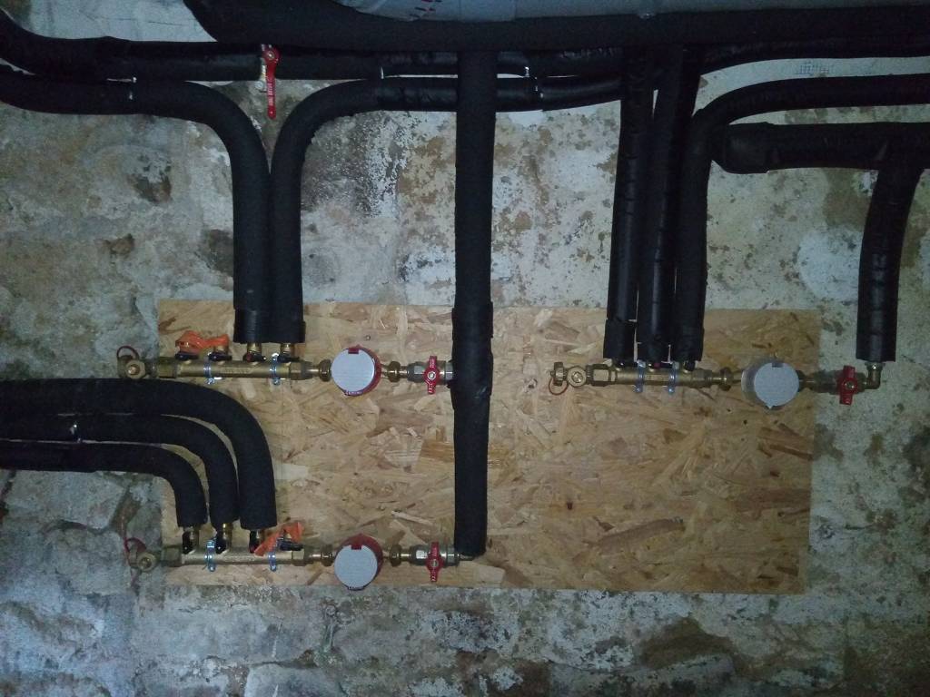 A Dun-sur-Grandry (58), installation d'une distribution d'eau froide et chaude avec compteurs séparés dans trois appartements.