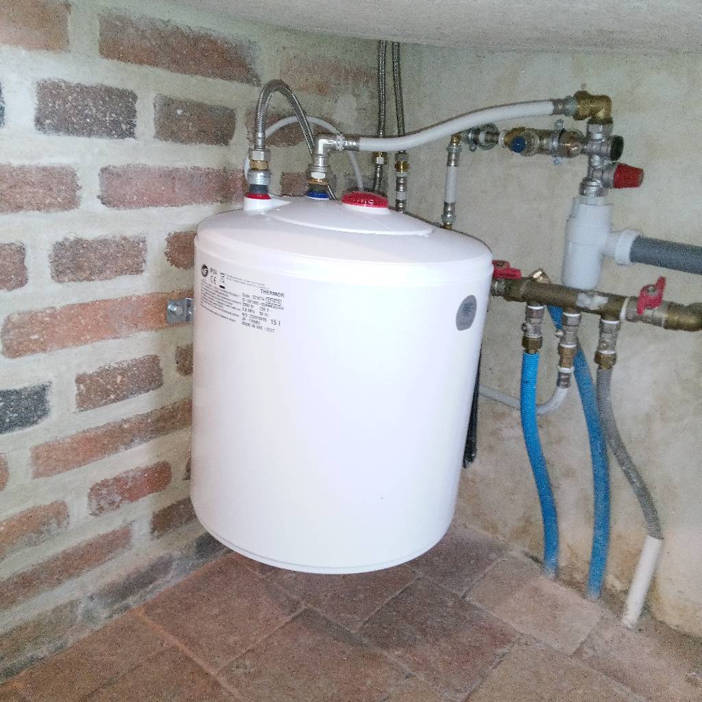 Sur une installation existante, mise en place d'un Chauffe-eau électrique Thermor - petite capacité RISTRETTO - 15 L sur la commune de Saint-hylaire-Fontaine, à quelques kilomètres de la commune de Decize, dans le département de la Nièvre (58).
