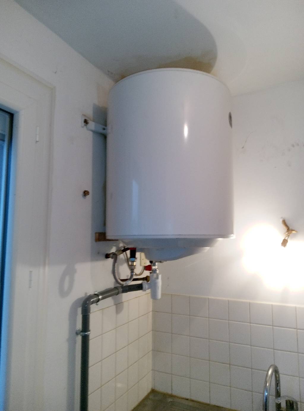 Sur la commune de Decize, dans le sud Nivernais, dépannage consistant au remplacement d'un chauffe-eau électrique percé par un modèle de la même capacité.