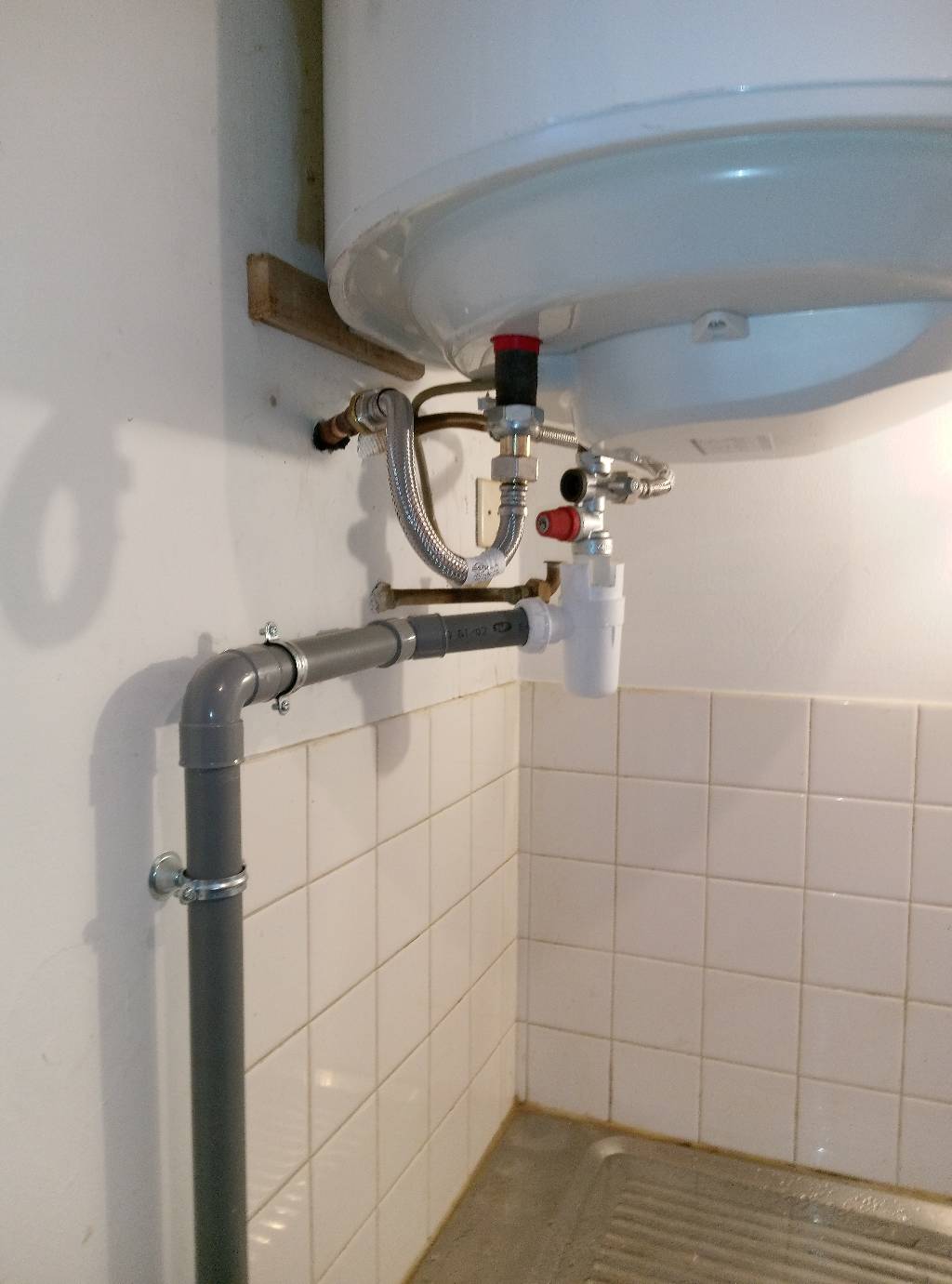Installation du chauffe-eau Thermor 100 L, raccordements étanches et sécurisés.