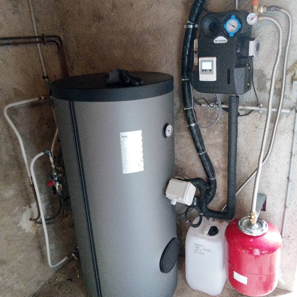 - 1 ballon solaire de 200 litres avec deux échangeurs de chaleur et une résistance électrique pour la relève.