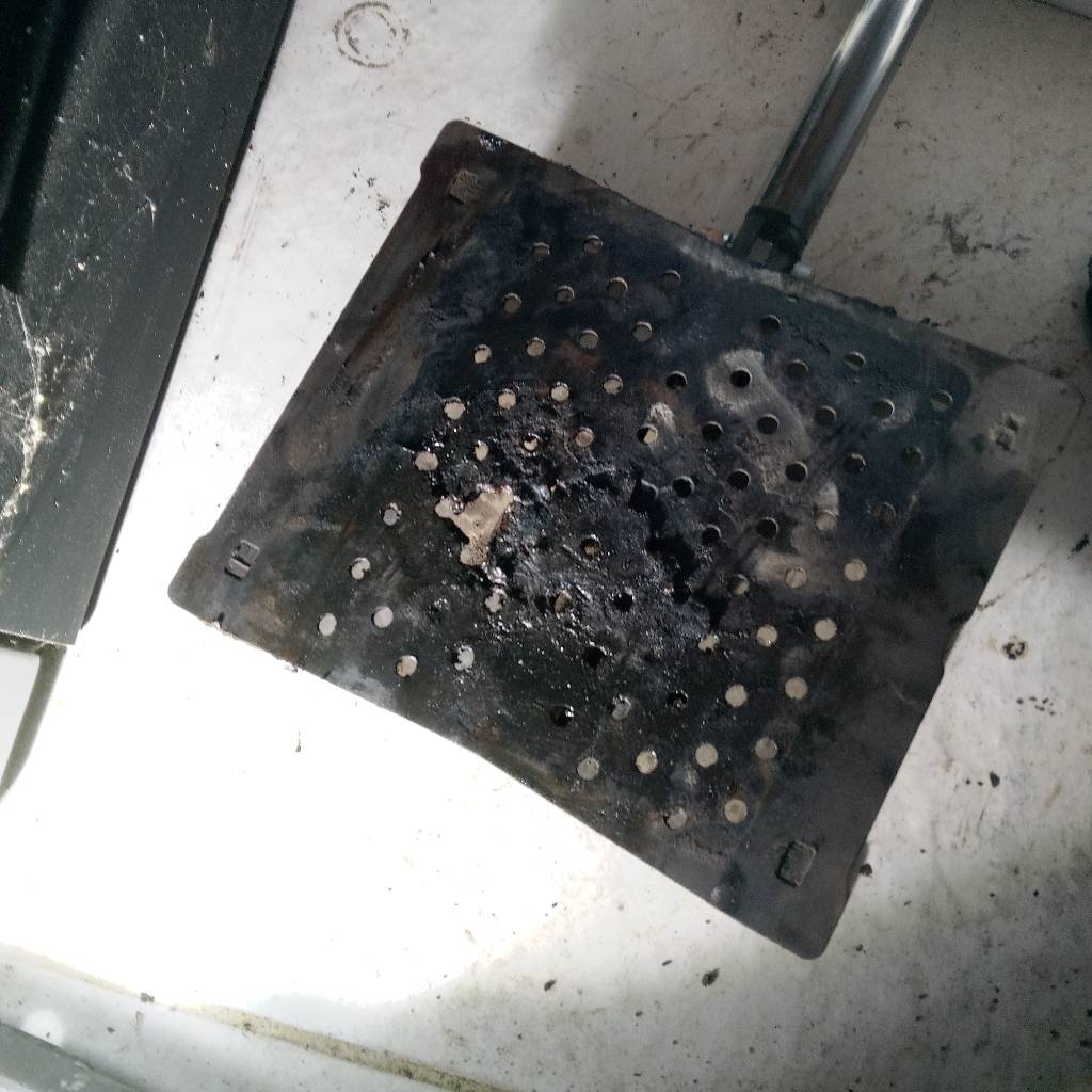 Diagnostique d'une assiette de combustion très détériorée suite à ce manque de maintenance.