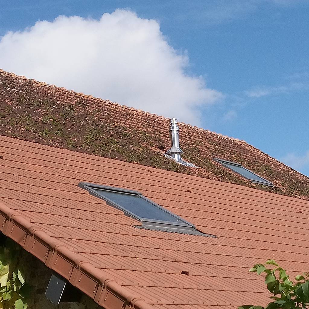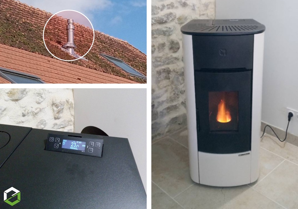 J'ai aussi installé un conduit de cheminée concentrique isolé qui permet l'apport d'air de combustion et l'évacuation des fumées.