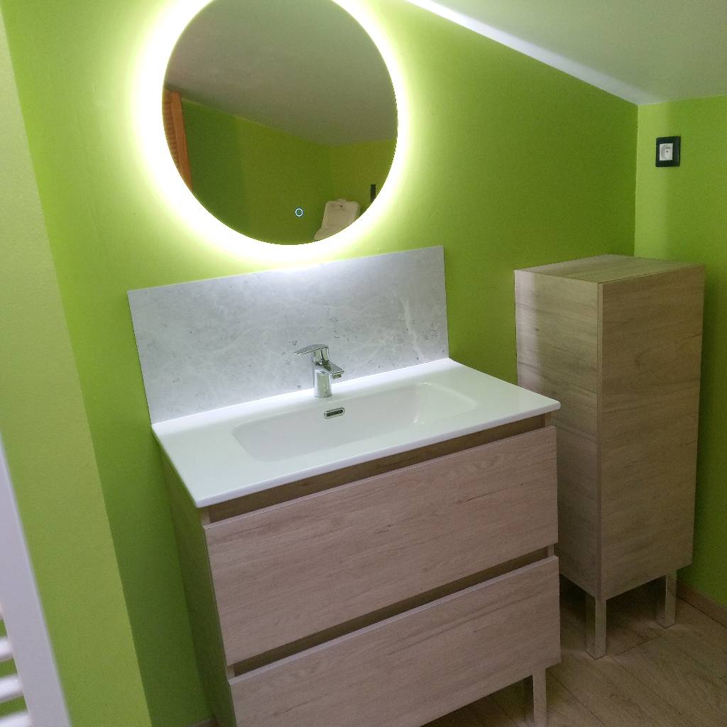 - pose d'un meuble vasque et d'une vasque + robinetterie Lavabo